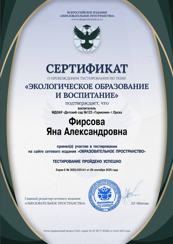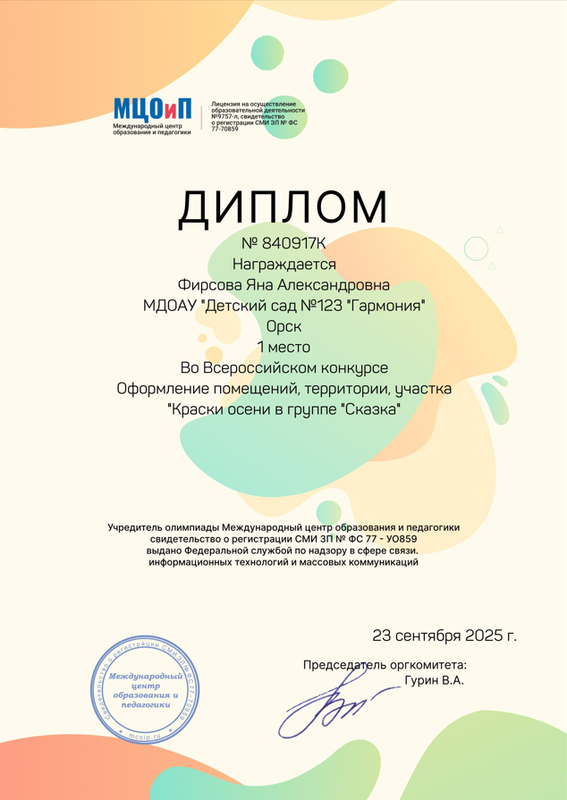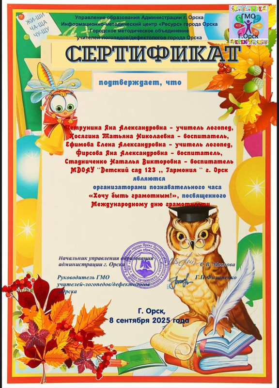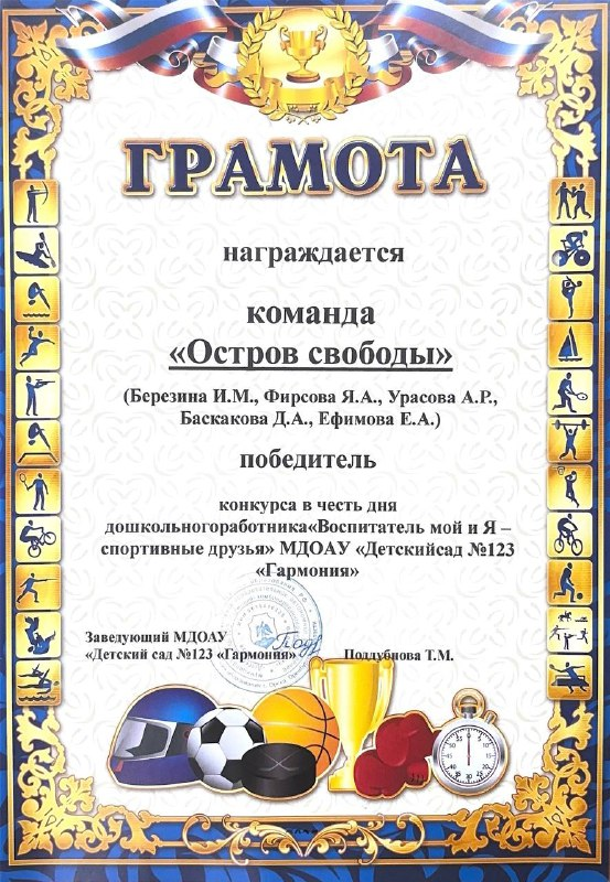 воспитателя МДОАУ "Детский сад №123 "Гармония"